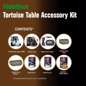 The HabiStat Tortoise Table Accessory Kit contains everything required to complete your setup for a tortoise table including all UV lighting, heating and accessories.