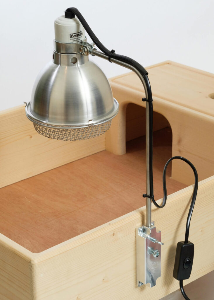 The Tortoise Den Adjustable Lighting Bracket has been specifically designed for purpose and is manufactured for us by a local professional engineering company. Made from solid aluminium and stainless steel, the bracket is fully adjustable allowing you to control the temperature by either raising or lowering the heat/UV source and pivots left to right. This enables you to change the location of the heat/UV source and achieve the right angle that is needed for your enclosure.