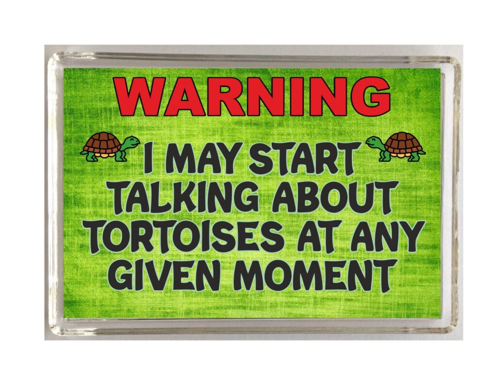 Tortoise Slogan Novelty Magnet – “Warning I May Start Talking About Tortoises At Any Given Moment”